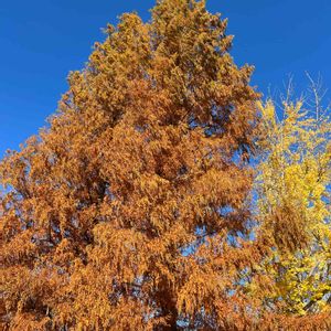 ご近所のメタセコイアが葉っぱを落として幹だけに💦でも威厳あるなー😊