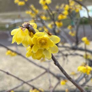 お散歩に行ったらロウバイが咲いていました💕素心ロウバイかな? みんな下向いて咲いてたけど、この子だけ中が見えました😊👍
