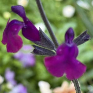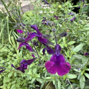 今年迎えたボッグセージ♪ ペンステモンと。 以前からこの花色が気になっていた。 多湿に強いらしく、混み合ってもいけるんでは…と迎えてみた。 ハーブ苗コーナーにあったので100円くらい。 ダメになってもいいやと植えてみたが、ナニコレかわいい… 完全にやられた。 でも実物はすごーく小さい。