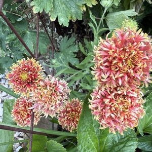 ギャラリーダリアとプチダリアハミングブロンズ♪ たくさんのつぼみをつけたままグッタリしたギャラリーダリア。 株の途中から腐ってドロドロ😱 諦めて株元からバッサリ✂️ 再生待ち。 裏庭のプチダリアは支柱をしなかったので寝そべりダリアに… 頂芽優勢の性質で株元からも花芽出してドンドコ咲き始めた。 いやいや、こんなところで能力発揮するんじゃないよ!とツッコミつつ、もう今シーズンは寝そべったままでもいいかーと放置。 今年はダリア運が無い。