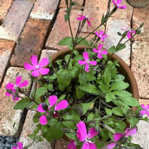 シレネピンクパンサーのこぼれだね鉢♪ キヨミさんのブログを見て、去年植えた鉢をそのままにしておいたもの。一緒に植えていたビオラの方は出てこなかったけど。(ビオラと思って雑草育ててたけど) キヨミさんはちゃんと植え替えていたと思うけど、忘れてそのまま育ててしまった😅 土もそのままだし、肥料もやってない。でもちゃんと咲いたわ。 その辺りがアメブロトップブロガーとセコセコガーデナーの差なんだろうな。 来年はこぼれたらちゃんと植え替えてあげよう。