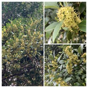 おはようございます😃 樹木の好きな私は、この季節、椿以外にも花を楽しみます。 これはモチノキの雄花です。 モチノキは雌雄別株です。 右上の小さな花を見ると、長い4本の雄しべ、中央にあるべき雌しべは退化しています。 雄花は数多く、枝にたくさん固まって咲いています。 木の下には淡い黄色の花がたくさん落ちています。 近くには雌株は見られず、雌花は撮れませんでした。 また、別の木で、見られたら投稿したいと思います。😊 遠目で、大きな木を見るとギンモクセイかと見間違えそうです。😅