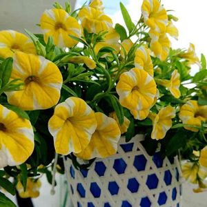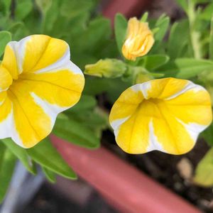 こんにちは😃🌤 本日2回目の幸せ顔さん(•ө•)♡ 🍋 カリブラコア レモンスライス 🍋 パープルのカリブラコアちゃんと混ぜ混ぜしよう!と思い、ハンギングバスケットに一緒にした子です。 パープルちゃんはまだ少ししか開花していませんが、こちらはどんどん開いています! 本当は摘心✂️してもっと目数を増やしたかったのに〜 (● ˃̶͈̀ロ˂̶͈́)੭ꠥ⁾⁾💕💕 気がつけばもう咲いてしまってました💦 パープルちゃんとの、グラデが楽しみなハンギングです *。.(♥´꒳`*)人(*´꒳`♥).。*