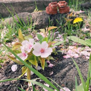 🏷2021シーサーの日 シーサーとお出かけ第2弾🤣🤣🤣 シーサーを👜に忍ばせてやって来ましたよ 桜並木🌸 植えて何十年も経ってるからか 地面から出た木の幹?!どちらかというと 木の根?!からも桜🌸が咲いていました。 周りをキョロキョロして👜からシーサー を出して手前に置いたり奥に置いたり 試行錯誤、前picはシーサーにフォーカス 今度は🌸にフォーカスしてみました〜♬︎♡