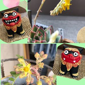 今日は4月3日 語呂合わせでシーサーの日 kaorioka2さん主催の、、 🏷2021シーサーの日に 参加させていただきま〜す😊💓 多肉ちゃん、クリスマスイブとあと2種 今年3年目ですが、昨年も今年も エネルギー使って沢山お花を咲かせてくれます。もうぎゅうぎゅうだよね。 なんとかしてあげないと、、ね、、💛 左下にクリスタルのシーサー様鎮座で参加です✨