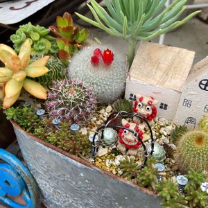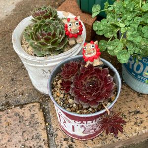 おはようございます☀️ 🏷2021シーサーの日 参加させていただきます🙋♀️ 👶「BBAったら シーサー無いからって何並べてんのよね〜」 👶「子供っぽい人形🐹🐧並べてご満悦🤣🤣🤣」 シーサー持ってないから イラスト引っ張ってきた💦 寄せ植えは、フラリエで狩った寄せ植えキットで作成💕 だから 丁度いい大きさの かわいい子🍀💕✨がバッチリ入ってるよ🤣🤣🤣 やっぱりある物寄せとは違うよね〜。゚(゚ノ∀`゚)゚。アヒャヒャ かわいい💕薄型🥫気に入った👍 cut苗ぶっ刺しでギュウギュウ寄せイイよね〜💕💕💕 意外と刺せてちょっぴり自宅セダムを足して仕上げ👍🎶✨ 今回も…自己満最高😭👏🏻✨の仕上がり🤣🤣🤣