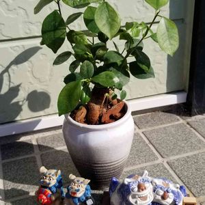 シーサーとがじゅまる まぶしい朝に 仲良く並べられた (2021シーサーの日に参加します!)