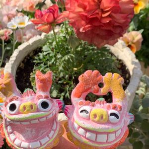 🏷️2021シーサーの日に、ハデハデなシーサーで参加させて下さい🤗 木立ちの小人の祭りさん、冬の間に少しは大きくなったかなぁ☺️🍀✨