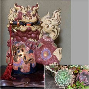 シーサー祭りの日だと知り、うちにもシーサーが一体有ったと思い出しました。 二体無いと意味がないのに。舅の兄弟が沖縄に移住して、そちらの方から送られて来た模様ですが、二体あった筈ですよね? 多分意味が分からず、一体は何処かに上げたのではないかしら? 姑が、私にとっては義姉にでもと。 今度一度聴いてみます。 右下の多肉はマーガレットレッピンを今日撮ったものです。