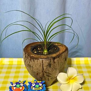 ❣️はるの部屋❣️ 2021 年 4月3日 シーサーの日 🏷シーサーの日に 参加されて頂きます😆👍 ヤシ🌴の実の鉢に トックリランを 植えてみました😆 飾りに シーサーと プルメリアを…💕 沖縄 大好き❤