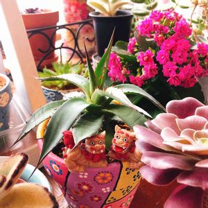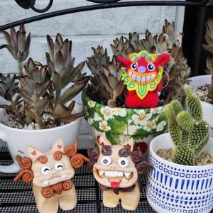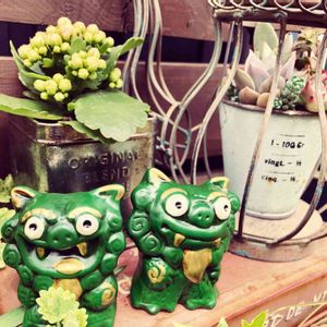 kaorioka2ちゃん主催 シーサー祭り 参加させて頂きます。 年に一度って聞いたので これわ、これは、参加しないとね😁🎶 ウチには昔からシーサーさんが 居なくて言ってたら 令和元年だったかなぁ〜 サプライズで素敵便💓沖縄に行ったお土産って kaorioka2ちゃんからシーサーちゃん💗 うれちい 沖縄の みぃみぃちゃんから やっぱり令和元年に頂いたホリダ 今日見たら少しシワ💦 慌ててお水あげたけど 大丈夫かなぁ〜土も硬くなってて ついこないだ届いた えみままちゃんのパッチワーク柄 リメ鉢に植え替えてみたよ。 えみままちゃん ありがとう(ˊฮ̴ .̫ ฮ̴ˋू)˚💗 うれちい そうそう 右側のカシミア黒法師 haruちゃんから去年頂き とても可愛い色になってます💗✨ うれちい 2021シーサーの日 今年もシーサーちゃんに見守られ 邪気を吹っ飛ばしてもらいましょう💪✨