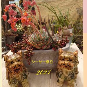 2021シーサーの日〜❤️❤️❤️ 久々の シーサーの日♬ シーサーは 毎日見る場所に置いてるよ〜。 何故だか 尻尾が取れてた💦 アロンアルファで 修復したよー。 これは 昨年ポチッた エワルディアナ💗 シーサーが 重く落とせないからね 低めで 撮影(笑)