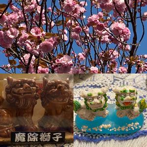 今日はシーサーの日だそうで… 息子と姪っ子のお土産でもらったシーサーと大好きな八重桜で参加します🌸 八重桜はポンポンみたいで可愛い😍💕