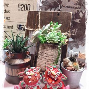 私もシーサー乗せましたよー! うちにたくさんシーサーあるのに やっぱり一番小さいお気に入りの これを持ってきちゃいますฅ( ˙꒳˙ ฅ) 奥が親株と思われる🌱🌱🌱 手前のごちゃごちゃ ちょっともうどうしていいか 分からないくらい密集してます🌱🌱🌱 これをひとつづつ外すの? いや、私はこのままいくよねー🌱🌱🌱 それよりどう管理しようか悩んでます🌱 これだけ特別扱いのように 鉢皿に乗せてます🌱🌱🌱 まぁ、どうにかなるさ なんくるないさー( 'ω' و(و"♪