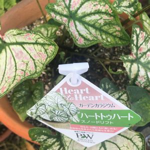 以前…いただいたガーデンカラジウム“ハートトゥハート”の根本から、小さな葉っぱが出てきました。ちゃんと柄も入っていて可愛い〜❤️