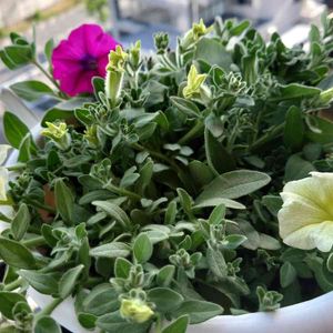 コラボ企画 「お家でガーデンを楽しもう」で いただいたサフィニア「イエロー」 2回の摘心で花芽がたくさん出来て 来ました 自分では黄色いお花はあまり買わない けどこのイエローの色は素敵です あとの2株はまた今度ね