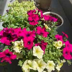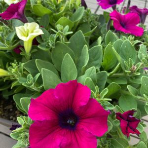 サフィニアモニター苗の寄せ植えです。 あっというまに鉢いっぱいに! どのタイミングで切り戻しすべきか 悩みどころです(^_^;)