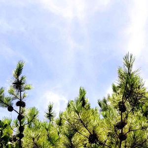 同じ場所。内科の近く。 勇気を振り絞り、カンカンッ照りの空を見上げた🌞🌞アツっアチっアチュウウっ‼️ 松ぼっくりって、この時期にもう付けてるの❔ 巨大な松ぼっくり。見た感じ、片手イッパイ分ありそう✋‼