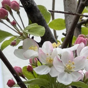 今日のお花 🍎リンゴ🍎 ヒメリンゴ バラ科リンゴ属 別名:イヌリンゴ ミカイドウ ❶❷25/04/12 地元の小学校にて 開花は4〜6月 咲き始めは薄いピンク色 ピンクの蕾の美しいこと 満開時には真っ白に ❸25/11/01 収穫されることなくたくさんの実をつけて🍎🍎🍎 この辺りは梨の産地 畑やお庭でリンゴの木を見かけたことがありません