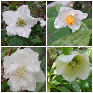 今年も小さな庭で白いお花が、咲き始めました。 ↘️のレンテンローズ(クリスマスローズ)だけは、今年はじめて咲いてくれたニューフェース😊。ずっと🌿が、一枚で三年あまり。苦節三年🤣。