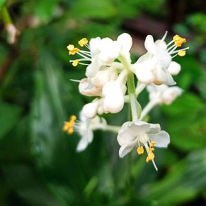 ヤブミョウガの花 ベランダの植木鉢に、見慣れない、白い花が咲いています。 植えた覚えがないので、ググッて見て、「ヤブミョウガ」と判明しました。 どこから、、、