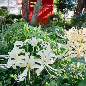 白彼岸花 家庭菜園(京都丹波亀岡 南郷町)脇の、白彼岸花が開花してきました。 蕾も、、、