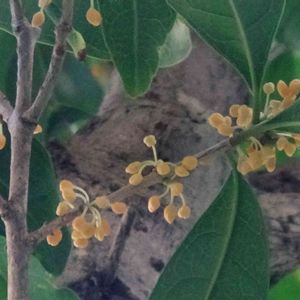 小さな庭のキンモクセイ キンモクセイの花が満開となって、 芳香を放っています。 いい香りです。