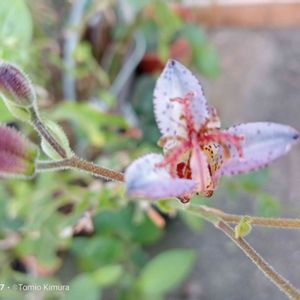 今日の花のホトトギス バッタの食害にあったホトトギスの花です。 葉っぱは、バッタ🦗に食べられて、殆どありませんが、健気に咲いています。 バッタ🦗が異常発生しました。