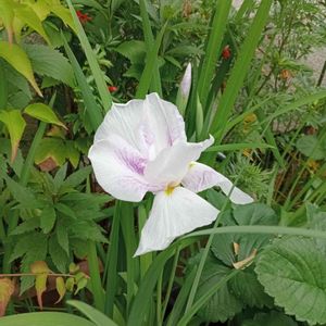 花菖蒲(稚児化粧) 今朝、小さな庭の水鉢に、花菖蒲が開花しました。 淡い化粧をした様な色の花です。