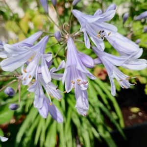 小さな庭のアガパンサス アガパンサスが最盛期を迎えています。 淡い紫色の花が咲きました。