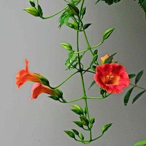 今朝のノウゼンカズラ 小さな庭の今朝のノウゼンカズラです。 房状に開花してきました。