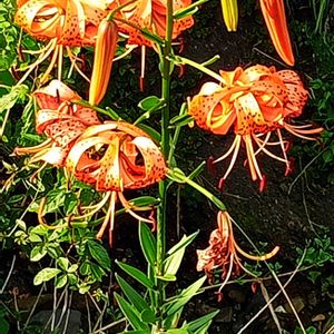 散歩道(京都丹波亀岡 雑水川堤防)のオニユリ オニユリが咲いていました。 鮮やかなオレンジ色で、自己主張していました!