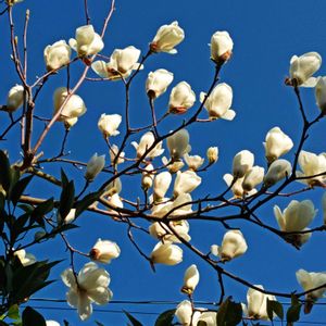モクレンが満開に 小さな庭のモクレンの花が、蒼い空に映えて、満開になりました。