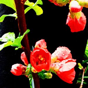 木瓜(ボケ) 小さな庭の赤色木瓜の花です。