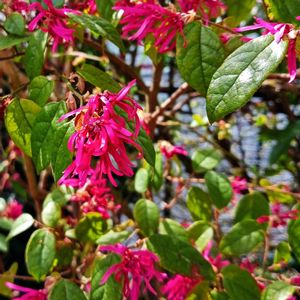 トキワマンサク 小さな庭の花色が赤いトキワマンサクが満開になりました。 赤色の少ない春先に、色を添えます。