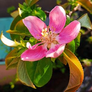 花梨(カリン)の花 小さな庭の花梨の花が咲きました。 ピンク系の花です。 秋には、ソフトボール大の実が成ります。 実は、カリン酒等に加工します。