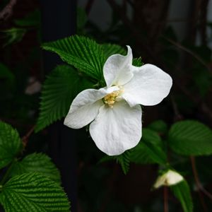 白山吹 シロヤマブキの一番花が開花しました。 黄色のビタミンカラーでは無く、清楚な白花です。