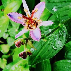 小さな庭のホトトギス ホトトギスの一番花の開花です。