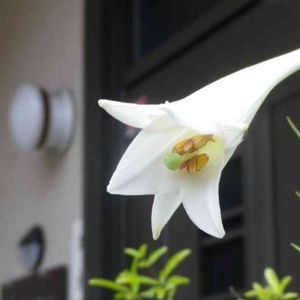 テッポウユリ 玄関脇の盆栽に間借りして開花したテッポウユリです。