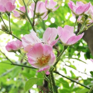 サクライバラの狂い咲き わが家の小さな庭の「サクライバラ」が綺麗に咲いています。 春に咲いたイバラです。