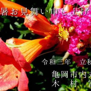 残暑 お見舞い申し上げます 立秋とは名ばかりの暑さが続きます。 コロナと熱中症にご注意下さい。