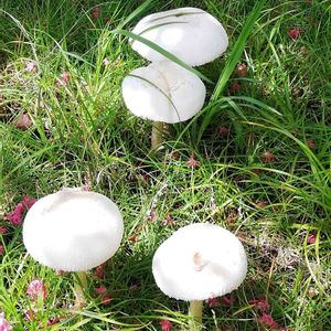 雨後のキノコ 散歩道の南郷公園(京都丹波亀岡)に、白いキノコが沢山生えていました。 4日に亘る豪雨が湿度を保ったのか、昨日は見かけませんでした。 キノコの名前は、オオシロカサタケと言い、強い毒性のキノコです。