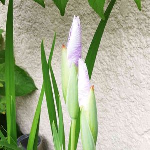 小さな庭の小さな水鉢の花菖蒲 花菖蒲の蕾が膨らんで来ました。 稚児化粧という名の花菖蒲です。 明日は、開花の報告が出来そうです。