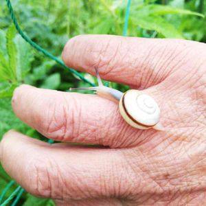デンデンムシ(カタツムリ) 梅雨の雨の合間に、家庭菜園で見つけました。 小さなカタツムリでした。