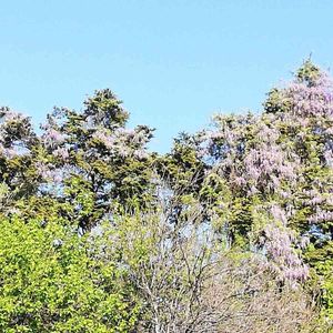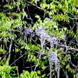 ヤマフジ 散歩道(京都丹波亀岡 亀山城址)のヤマフジが開花しています。 樹木に絡みついて、、、