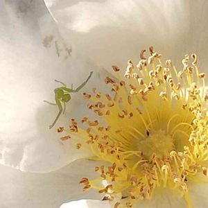 散歩道の「ナニハイバラ」 散歩道にナニハイバラが開花していました。 小さな訪問者(ハナグモ)も居ました。
