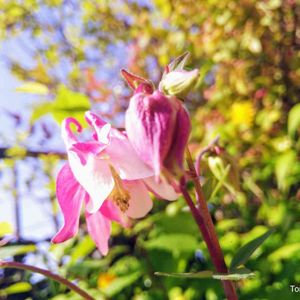 小さな庭の西洋オダマキが開花 西洋オダマキが開花しました。 ピンク系の可愛い花です。
