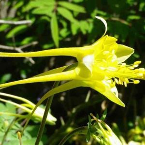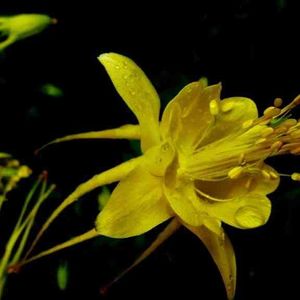 西洋オダマキが開花しました。 黄色のビタミンカラーです 花芯の先端からシッポの端まで、約10cmになります。 勝手にコメット(彗星)と呼んでいます。