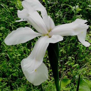 アイリスアルビカンス 家庭菜園脇に咲いていたアイリスです。 名前は、「アイリスアルビカンス」と言うようです。