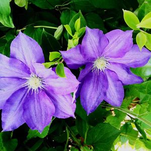 散歩道の「クレマチス」 散歩道(南郷公園 丹波亀山城趾内濠跡)のクレマチスです。 直径20cm程の大きな花でした。